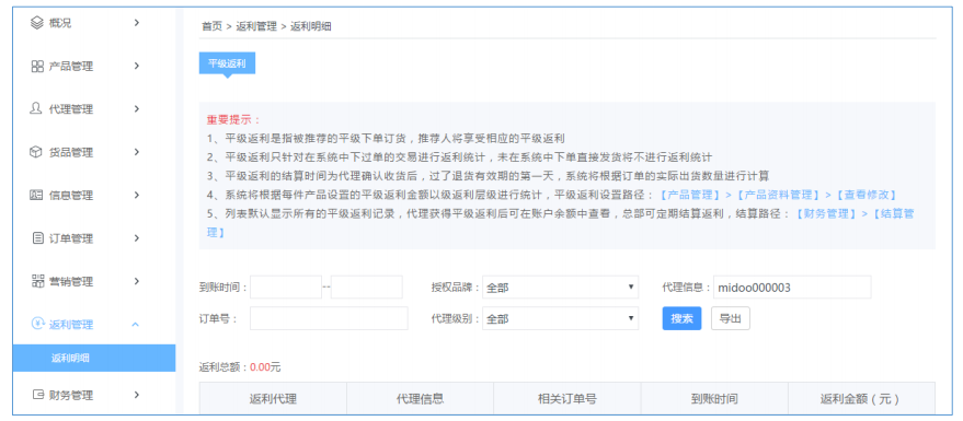 返利管理系統(tǒng),平級(jí)返利、推薦返利、分銷返傭,多種方式激勵(lì)代理團(tuán)隊(duì)部發(fā)展;